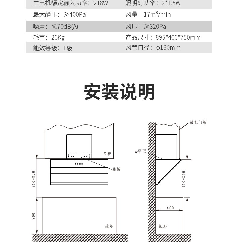 前鋒近吸式吸油煙機E723