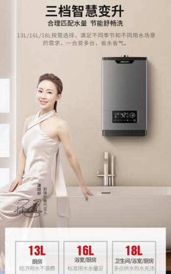 前鋒F703熱水器貼心的采用三檔智慧變升技術,用戶可以根據不同季節、不同家庭成員對熱水的不同需求、不同用水場景,在同一臺熱水器上靈活實現13L/16L/18L三檔多模式選擇。一臺變多臺,合理匹配水量,省水省氣,讓我們的生活更加美好。